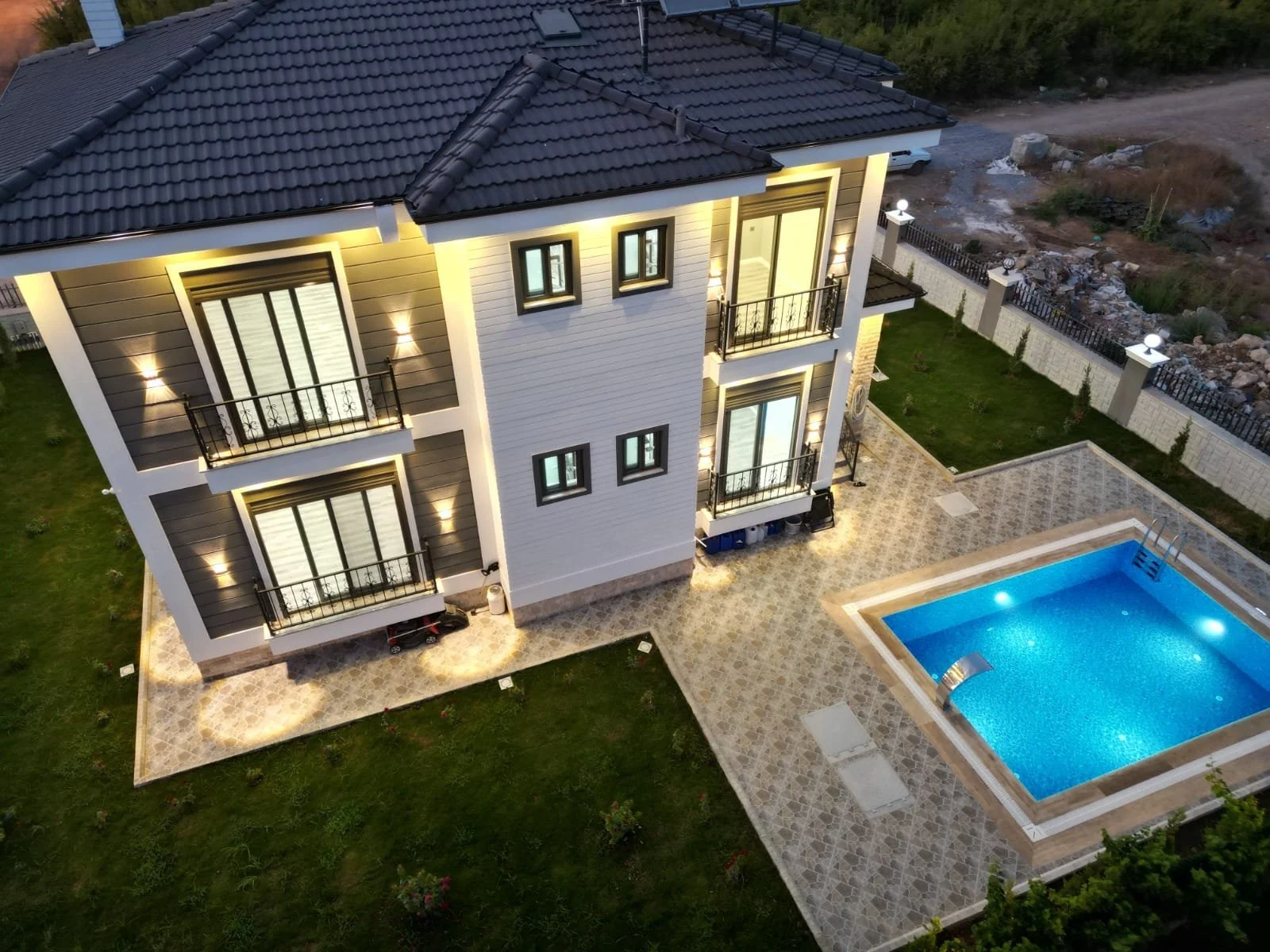 A brand-new luxury villa in Kırkgöz, Döşemealtı, offering modern living spaces, high-quality construction, and a peaceful natural setting.